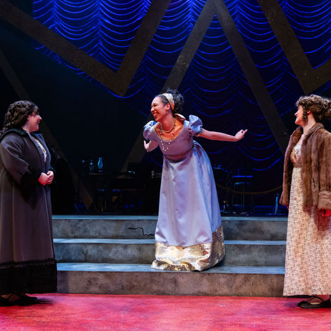 The lighting took inspiration many spaces and styles in order to support the soaring emotions and changing status of the characters. The beginning before Anatole arrives was a stylized version of the lighting found in opera entrances to create an air of aristocratic tastes, and more dreamlike when Natasha had her ballad. When Anatole arrives the lighting took more inspiration from clubs, using bolder and brighter colors and movement to reflect the influence he has on Natasha, creating a space that feels almost too much at times as young Natasha struggles to properly understands this changed world. As a contrast and a relief, Pierre's moments were smaller and more intimate, allowing the audience to breathe. After the failed abduction the lighting signals another change in the world into something that feels unfamiliar and hostile as Natasha's world falls apart and she deals with the results of her actions. The final comet washed over both the characters and the audience, signaling new life and catharsis.
